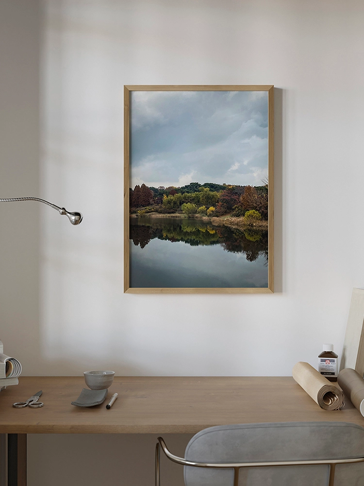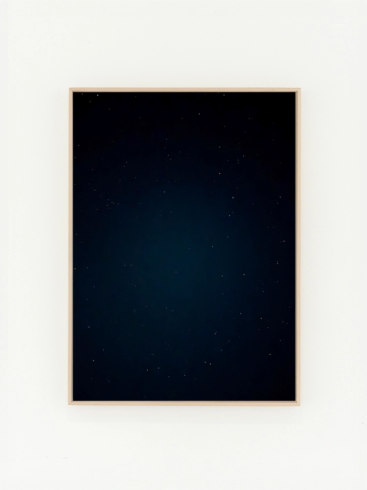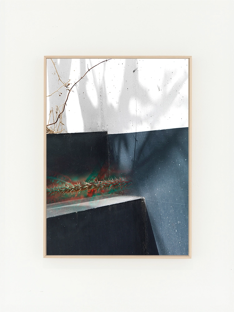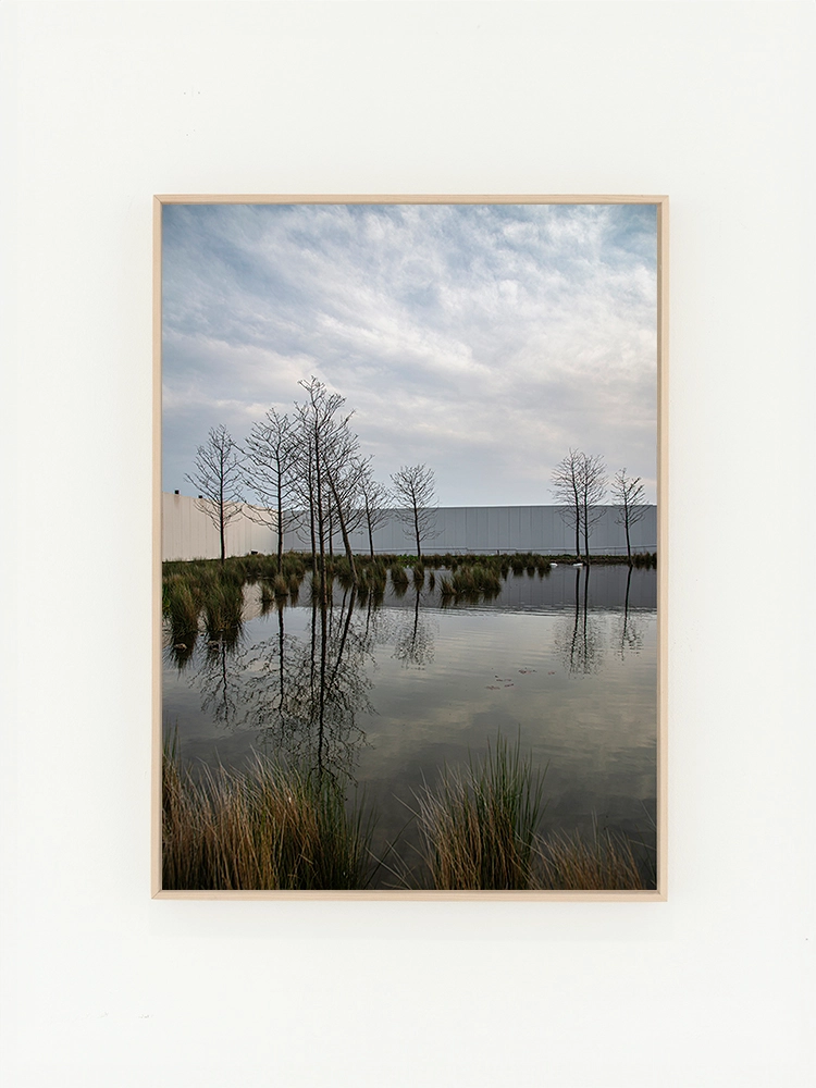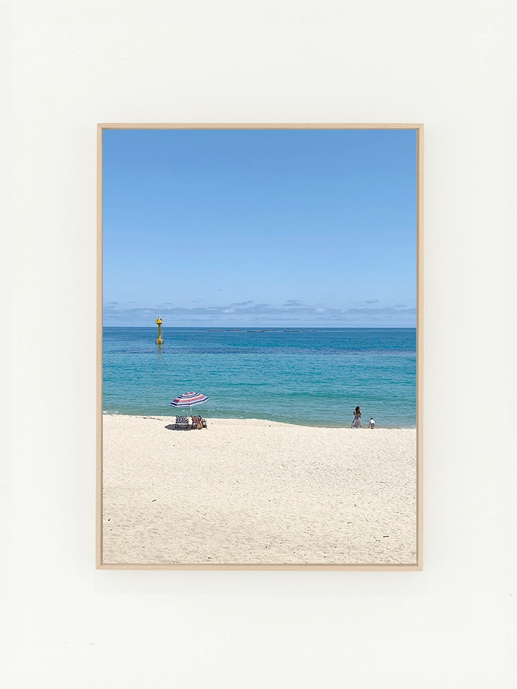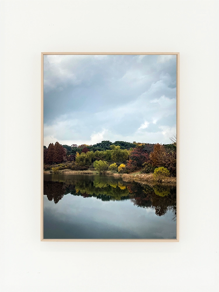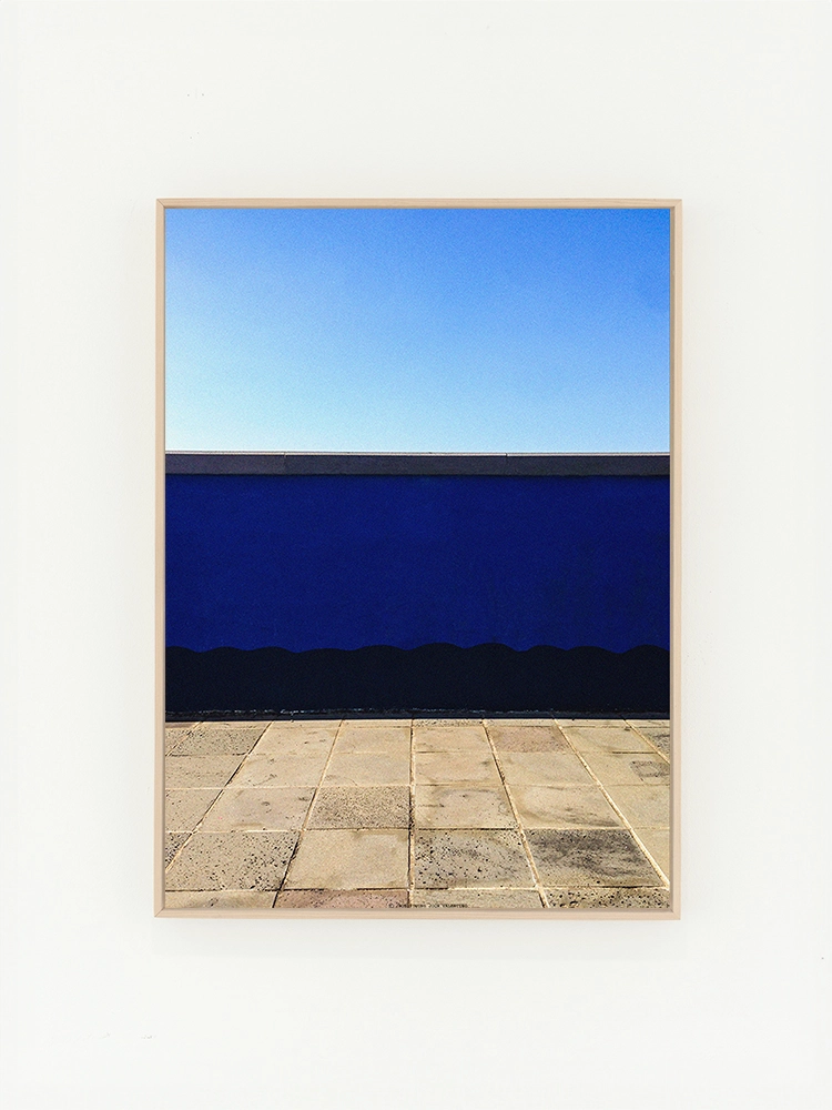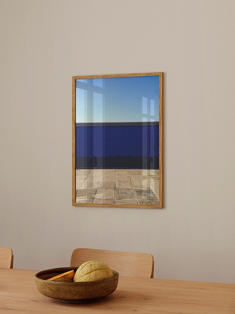 고요한 하늘과 진한 블루의 연속성, 인공적인 타일의 모습은 자연과 인공의 조화를 미니멀한 요소로 구성한 작품.