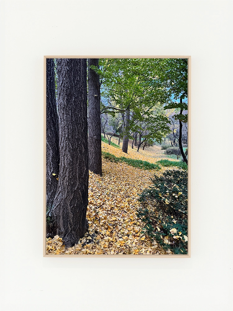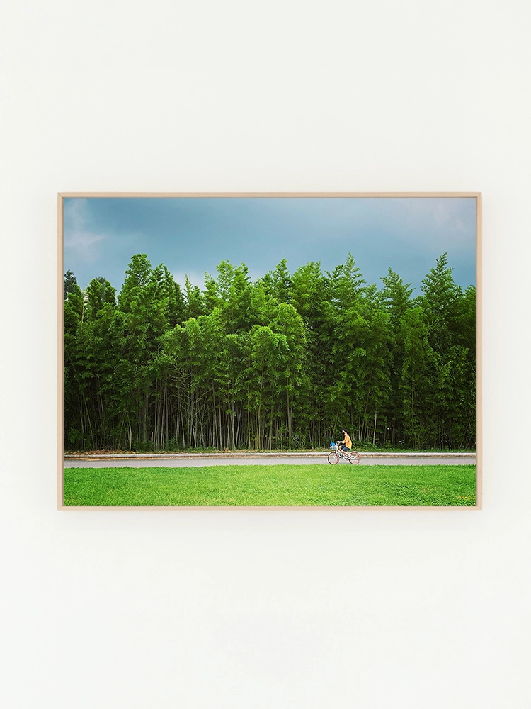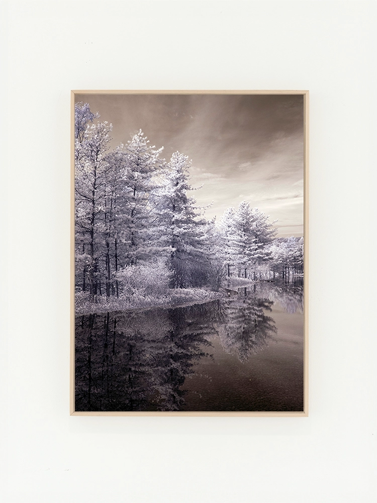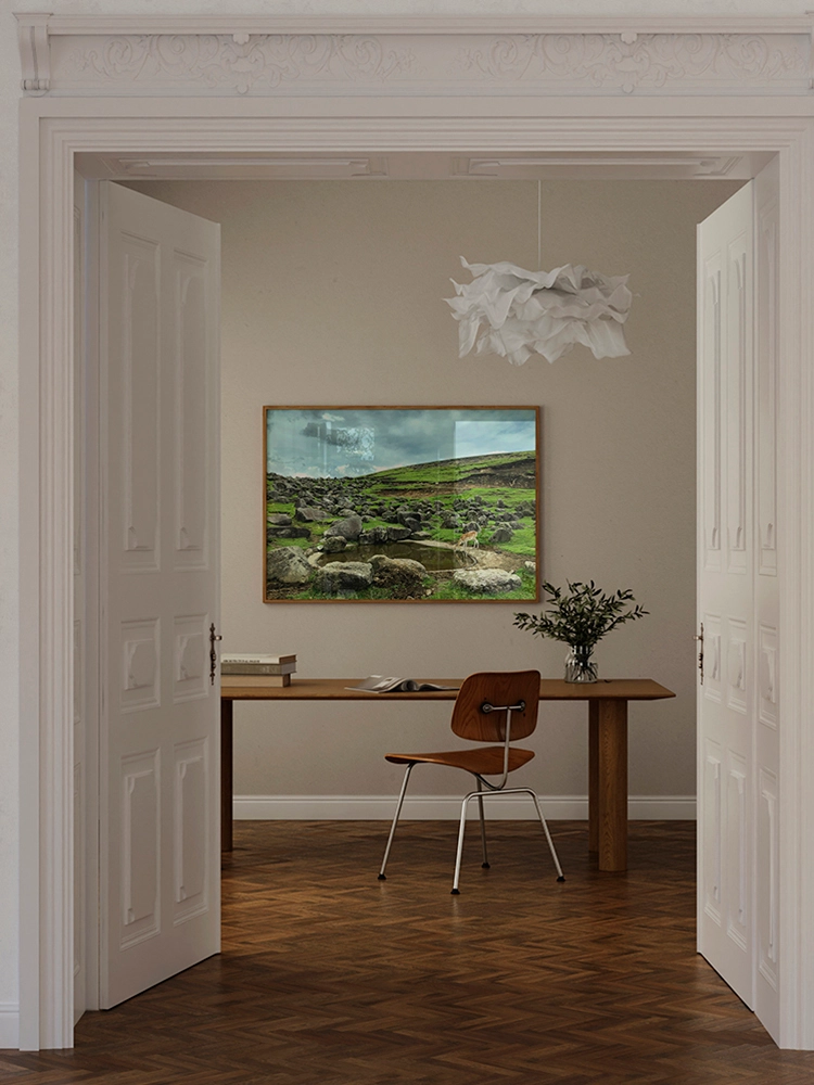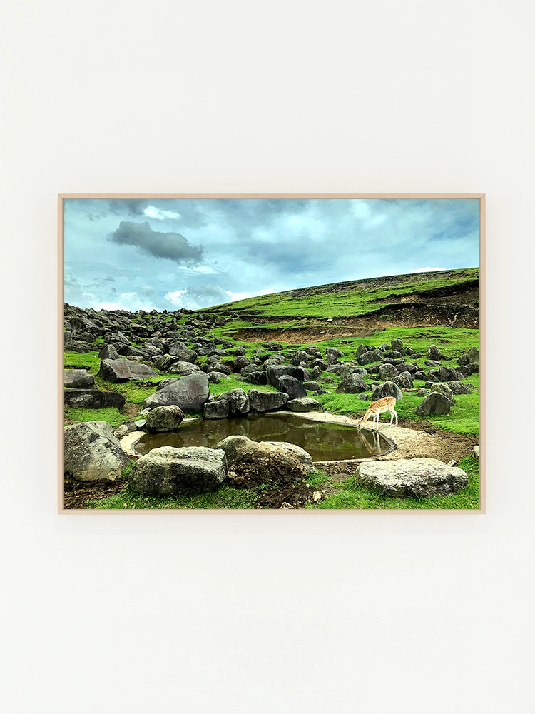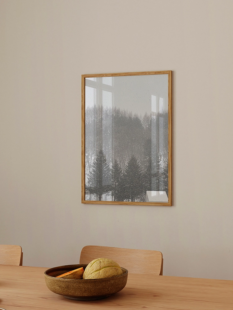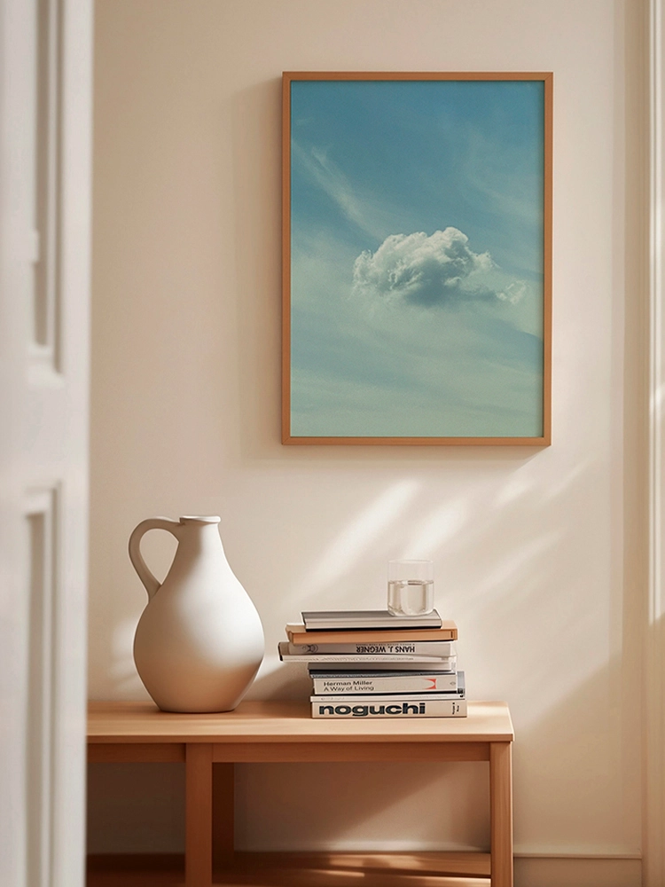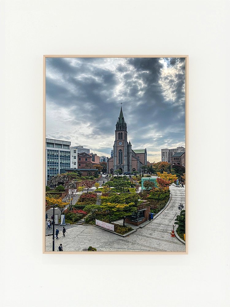 고요한 하늘과 진한 블루의 연속성, 인공적인 타일의 모습은 자연과 인공의 조화를 미니멀한 요소로 구성한 작품.