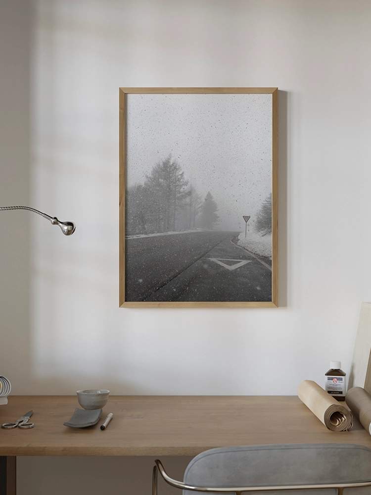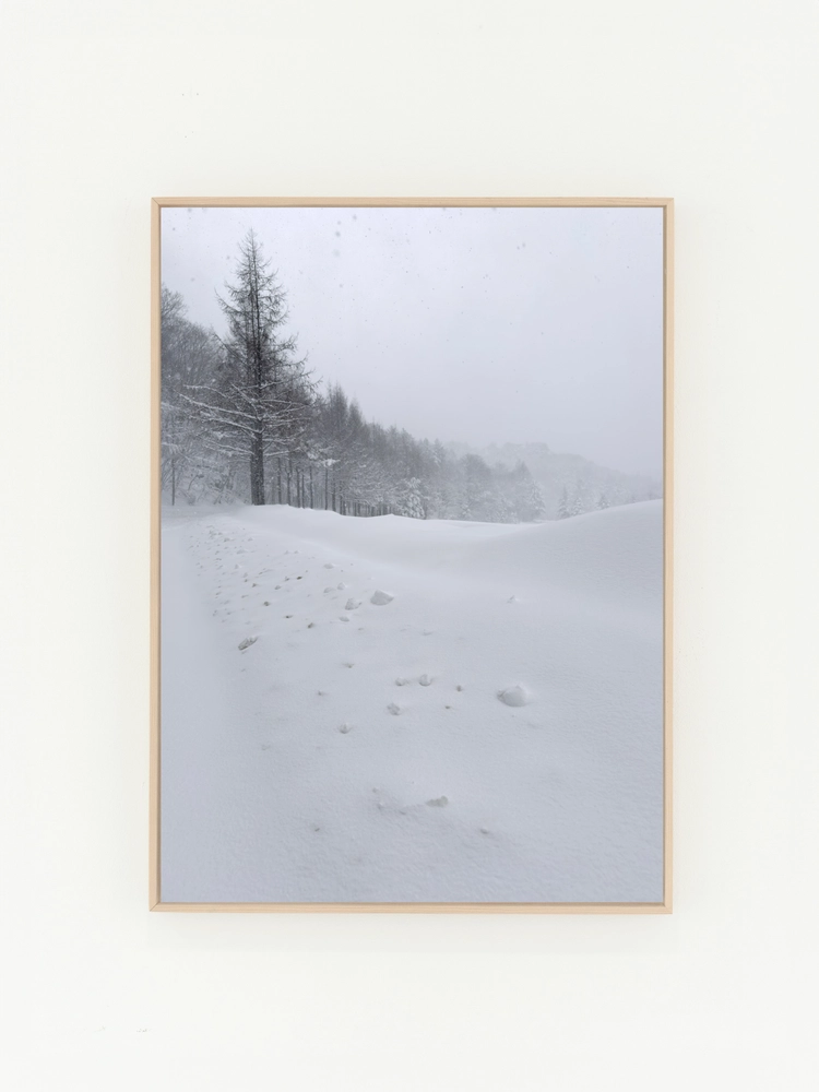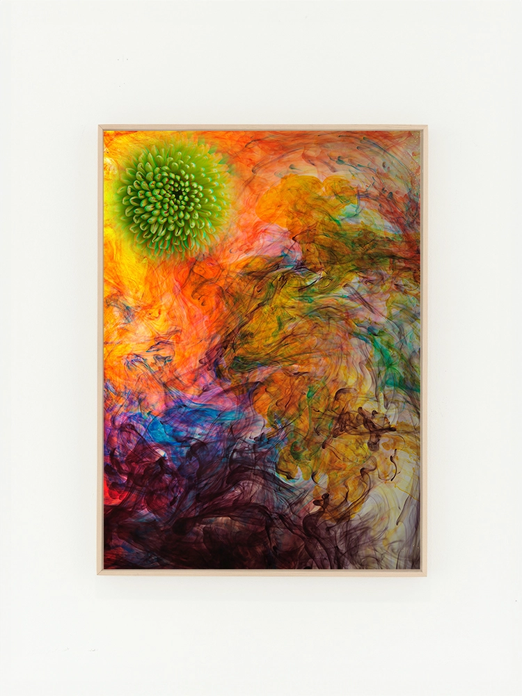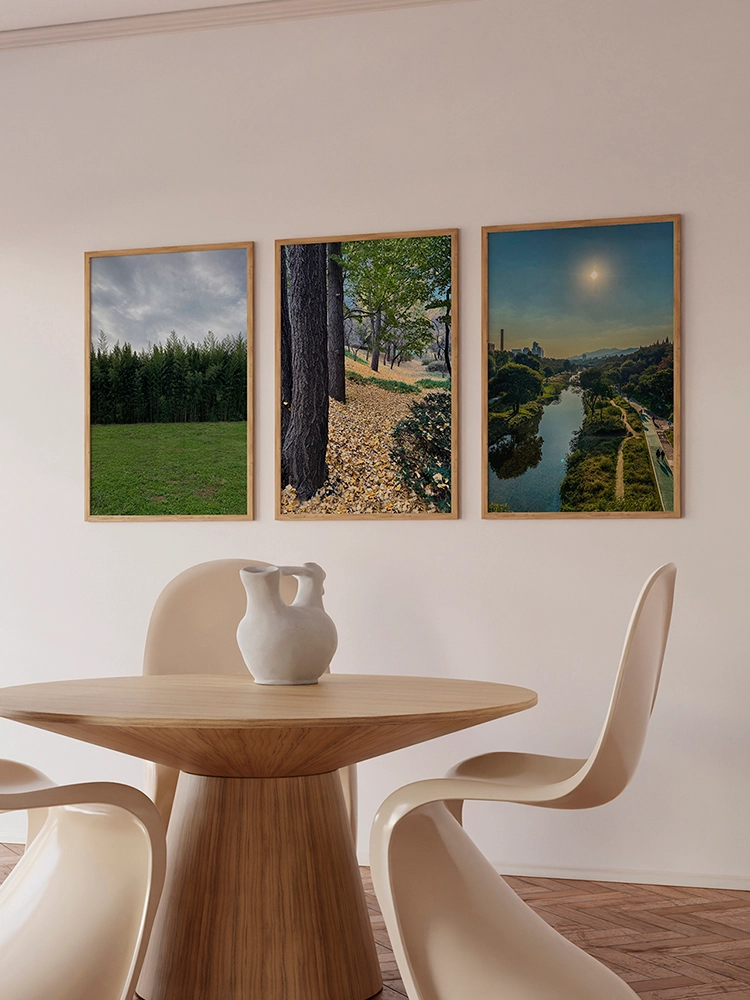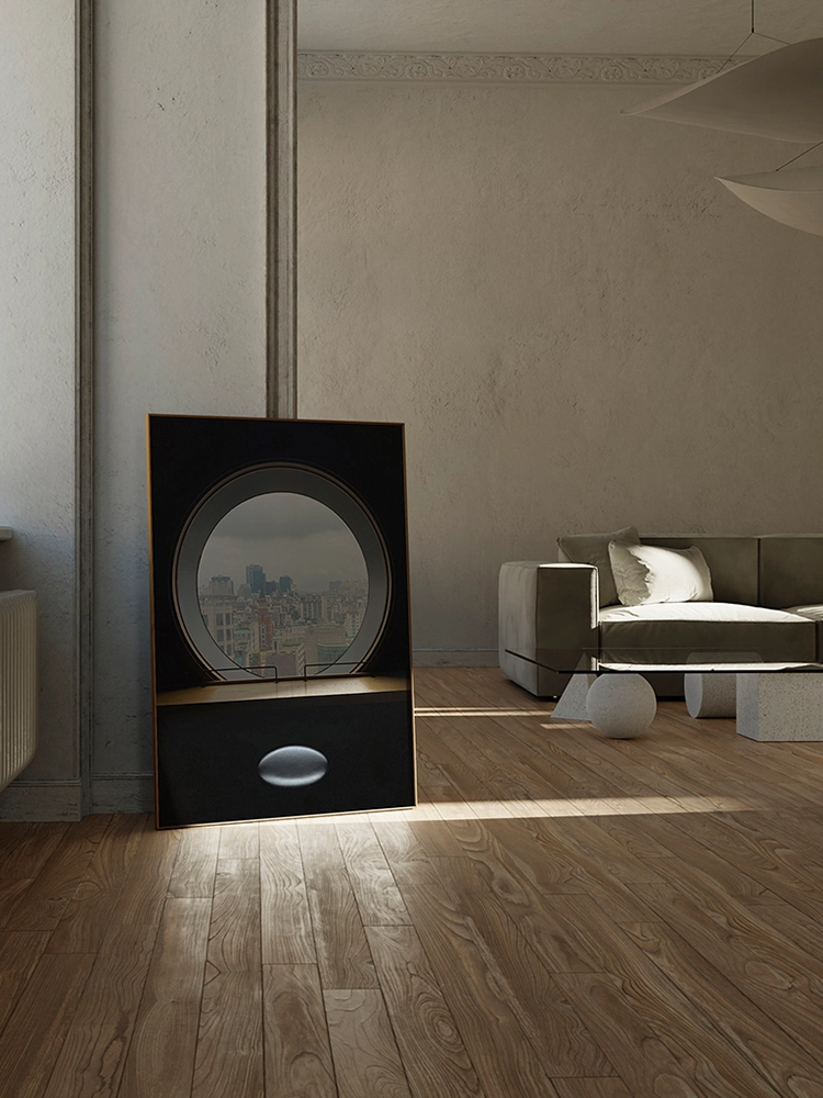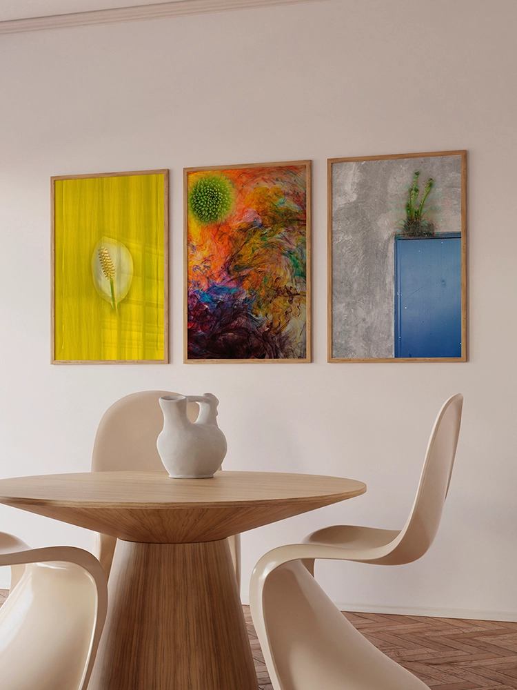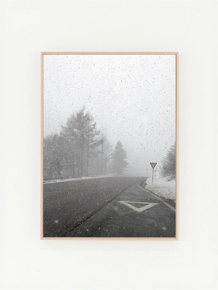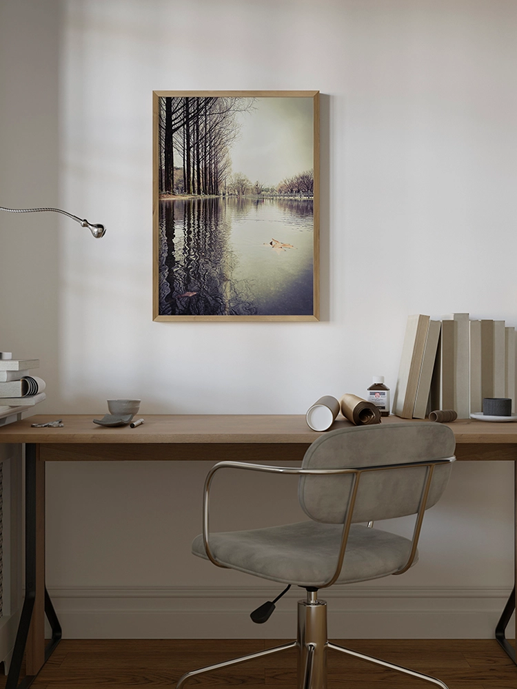 고요한 하늘과 진한 블루의 연속성, 인공적인 타일의 모습은 자연과 인공의 조화를 미니멀한 요소로 구성한 작품.