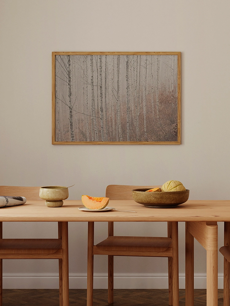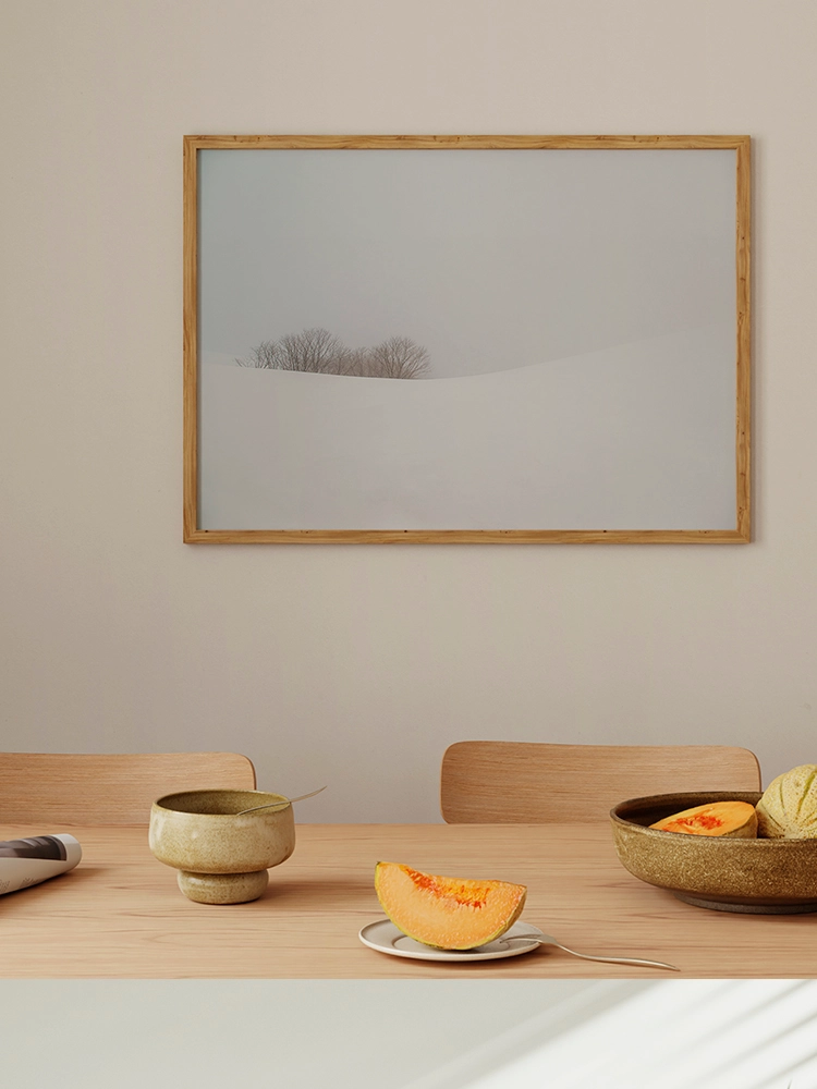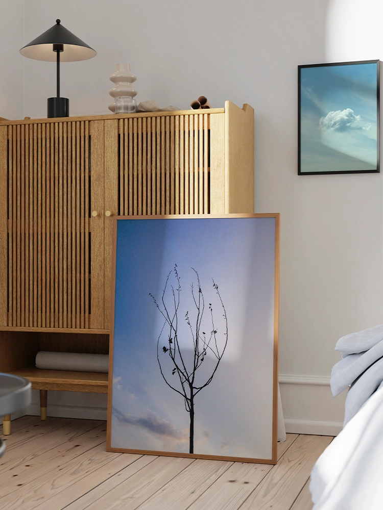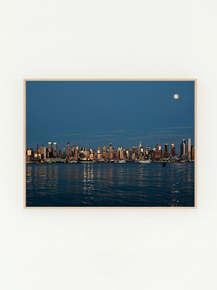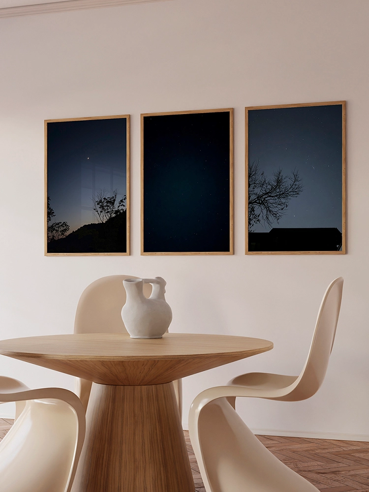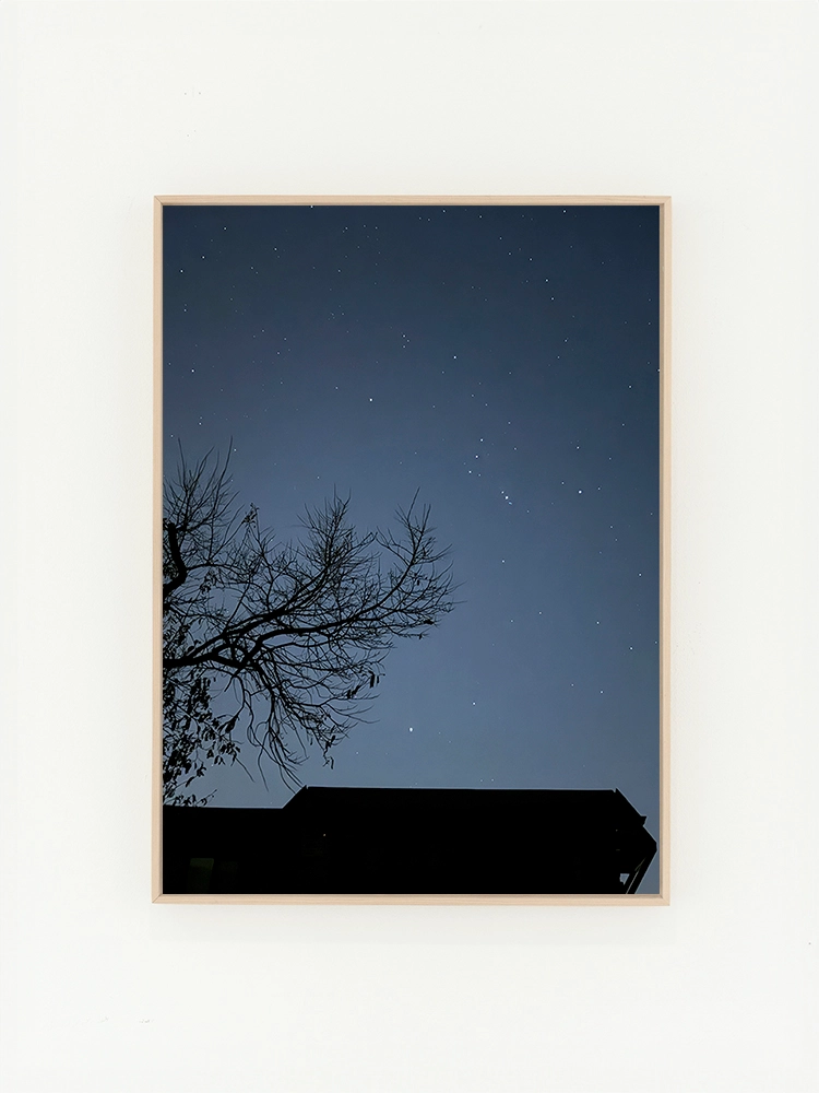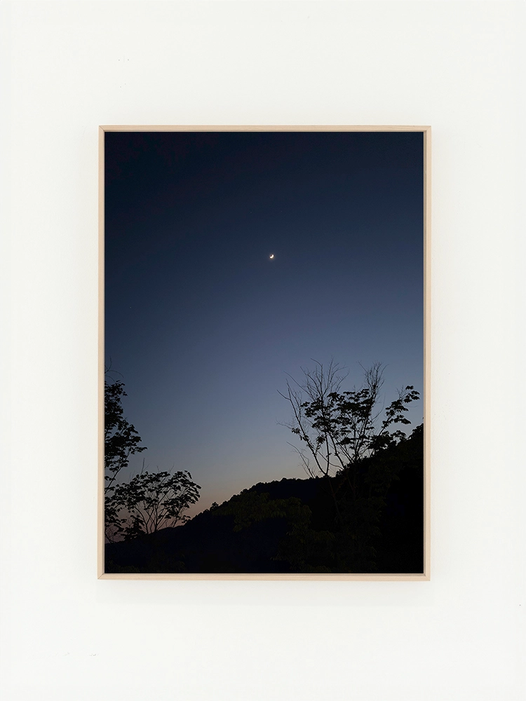 새벽하늘의 달과 나무의 실루엣으로 깊은 고요함을 표현한 작품