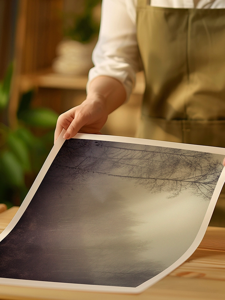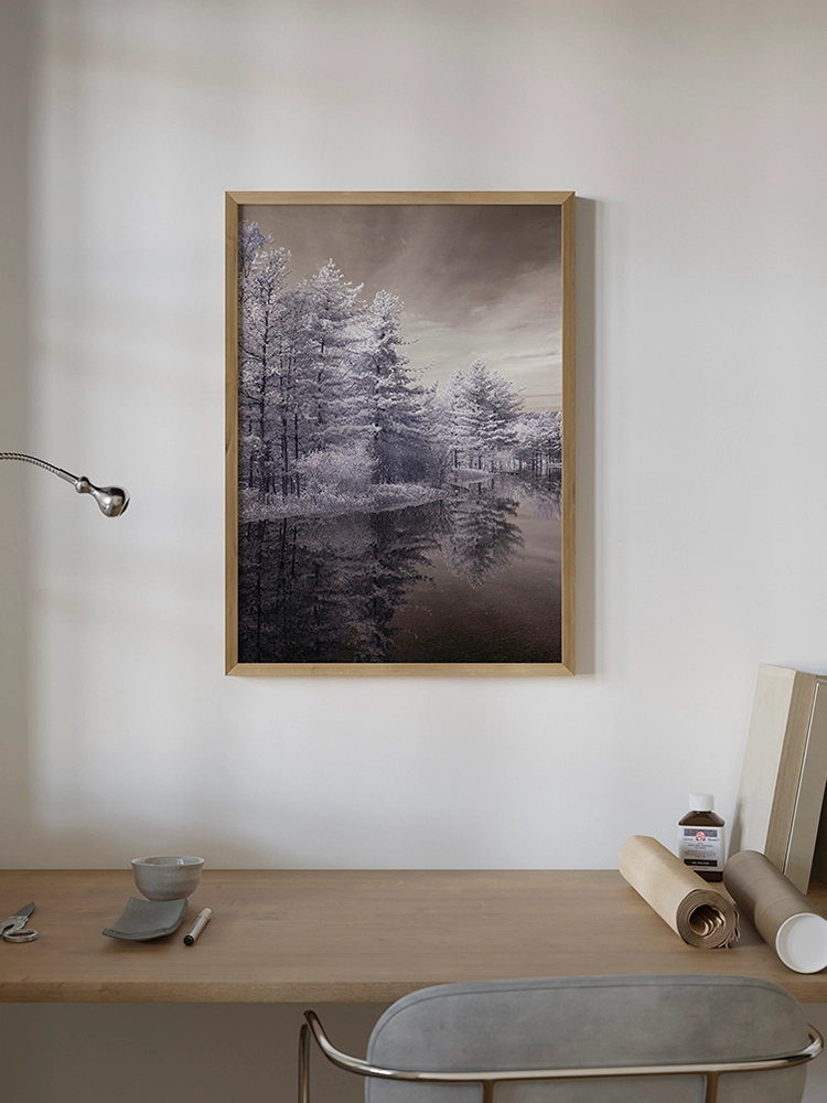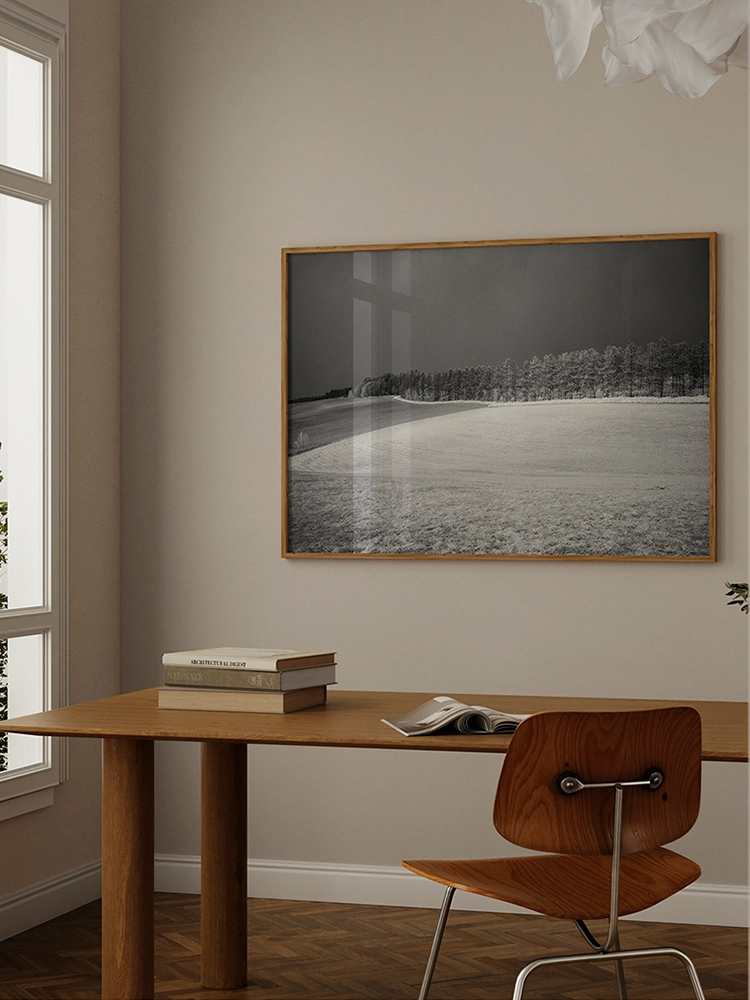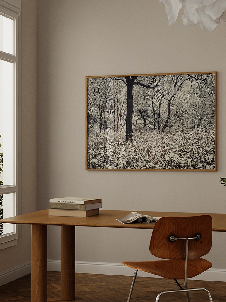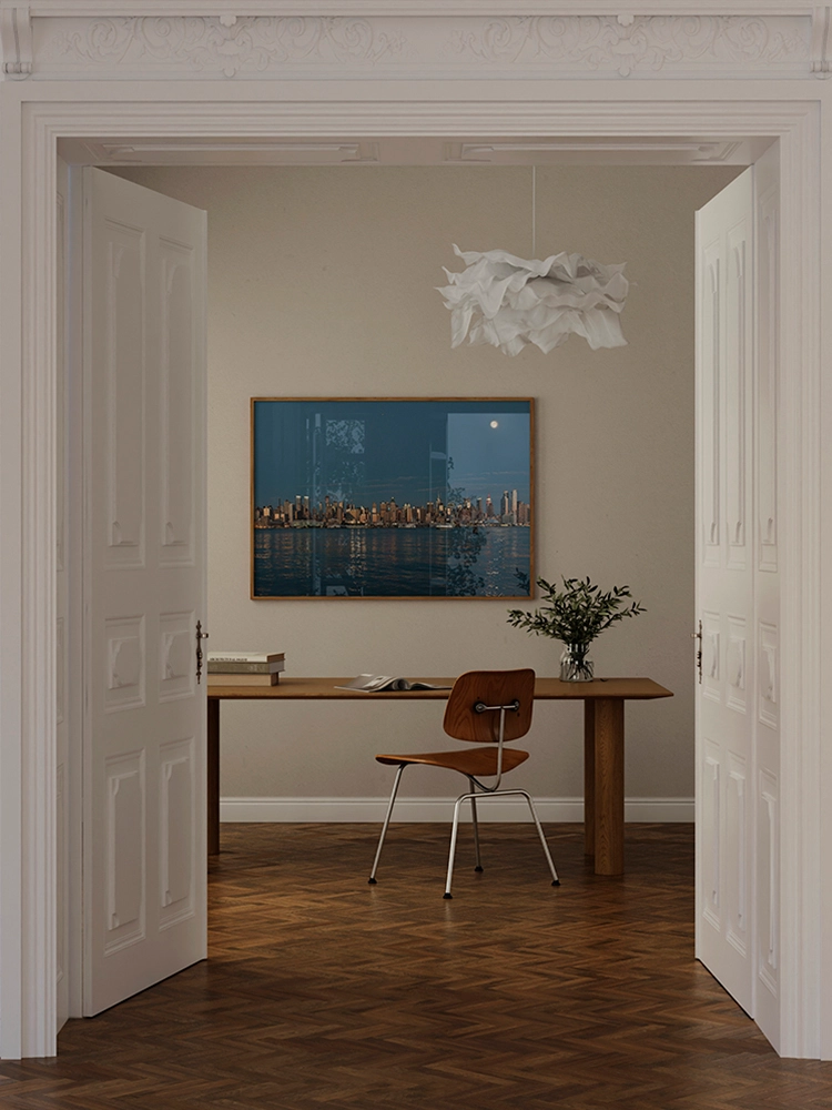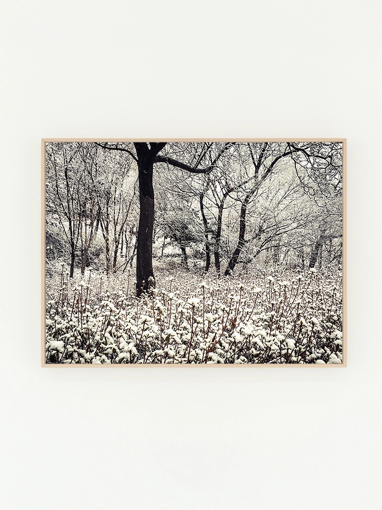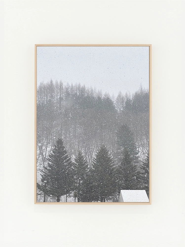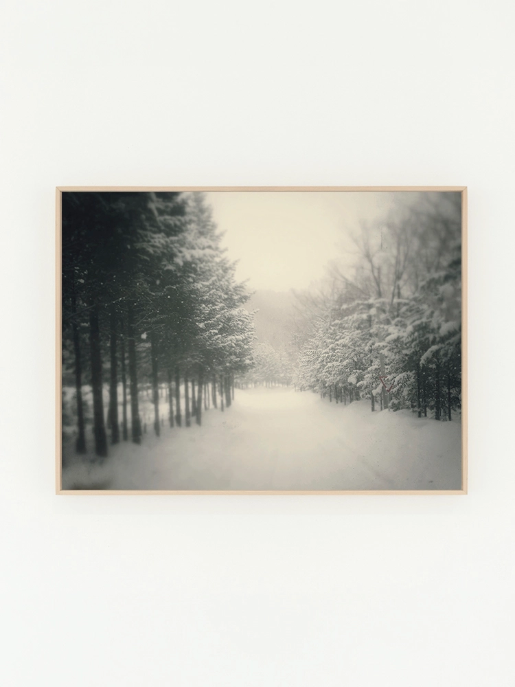 새벽하늘의 달과 나무의 실루엣으로 깊은 고요함을 표현한 작품